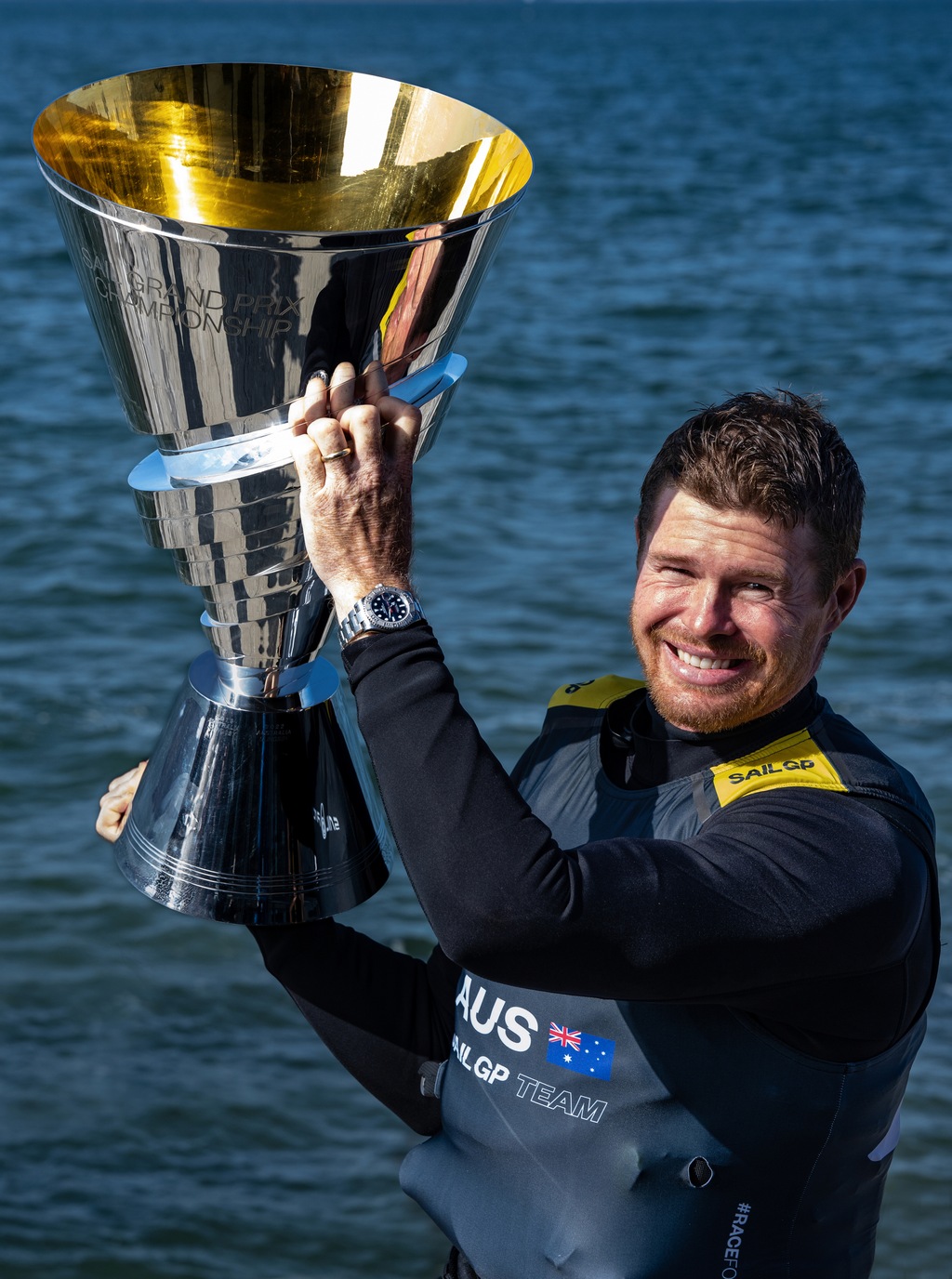 TOM SLINGSBY, LIFTS THE SAILGP CHAMPIONSHIP TROPHY FOR THE THIRD TIME | Image Rolex