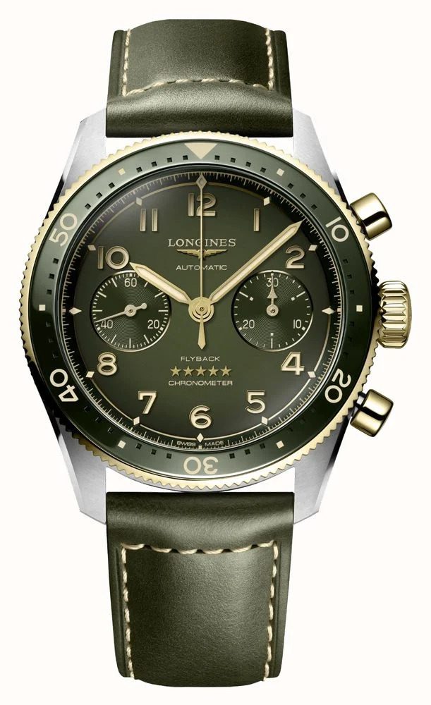 Longines’ Spirit collection boasts the traditional features of aviators’ watches as well as the latest innovations in horological technology. The Flyback line has just received a revamp, with two new varieties featuring green or brown dials and cases made of steel and 18-carat gold – personally, we prefer the green. The Flyback is powered by the Longines calibre L791.4 and is equipped with a silicon balance-spring, making it ten times more resistant to magnetic fields. The dial is topped with a multi-layer anti-reflective sapphire crystal and features a sub-seconds dial at 9 o’clock and a 30-minute timer at 3 o’clock.