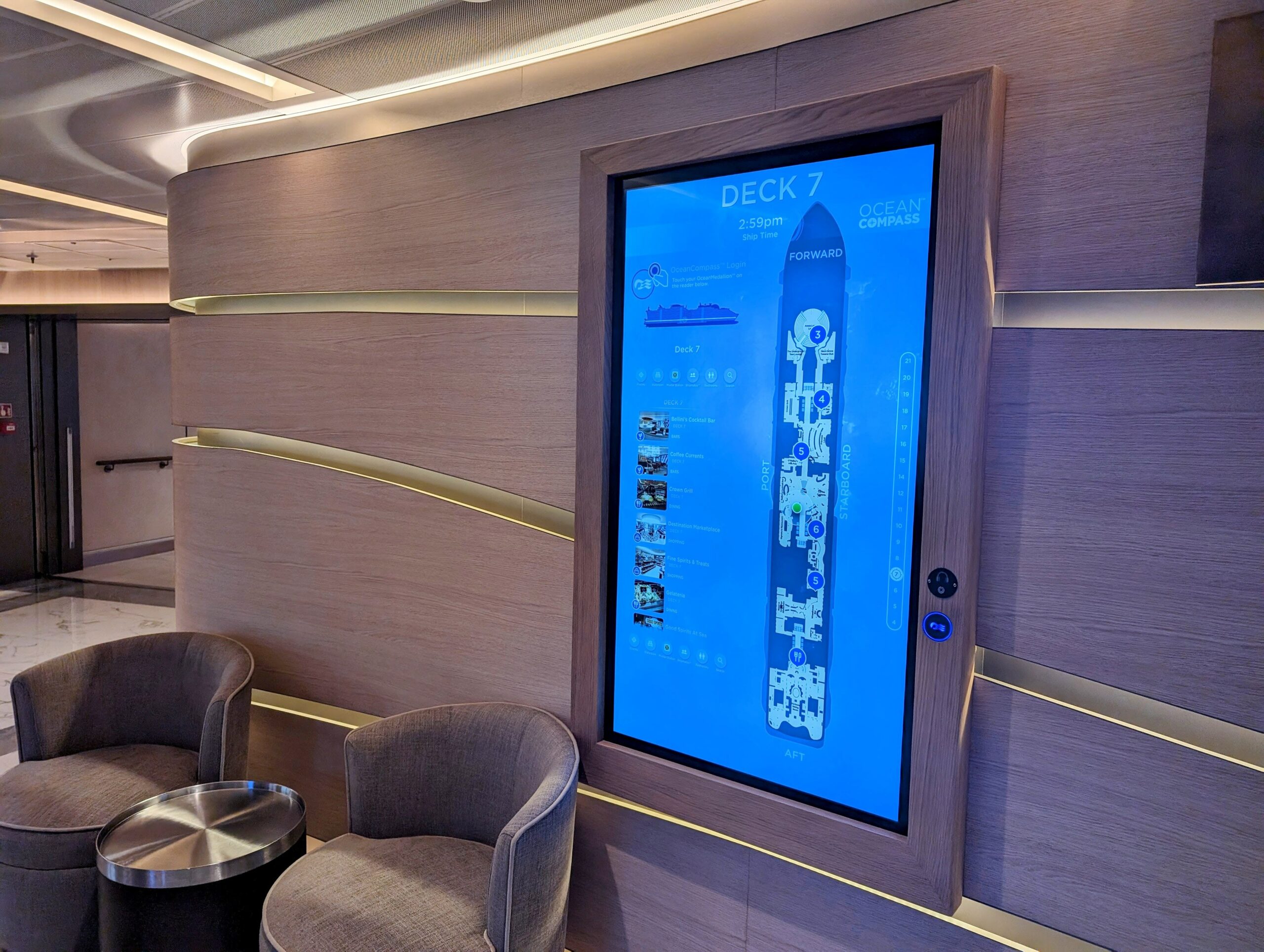 Cruising in 2024 is far more technology driven than we imagined. Prior to sailing we were informed to download the Princess app which enabled us to book restaurants, shore excursions and upon arrival we were set to board within minutes. Guests are given a Medallion to carry or wear rather than a room key. This small beacon unlocks your room door as you draw near, allows staff to find you and deliver drinks and meals, helps you find loved ones and is all you need to get off and back on the ship. The app onboard continues to add functionality such as ordering cocktails from anywhere on the ship to booking a spa treatment. The connectivity onboard is also impressive as we were able to stream Netflix, browse social media, attend Zoom calls (yes, we worked while onboard) and video call back home.