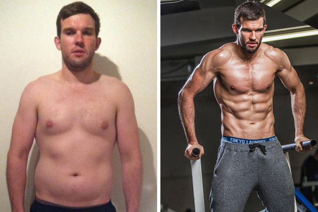 Now 34 years old, he currently weighs 89 kilograms, his body fat percentage is in the single digits, and he’s totally transformed his abs by consistently doing a variety of exercises like hanging leg raises, decline situps, Russian twists, reverse crunches, and weighted knee lifts.