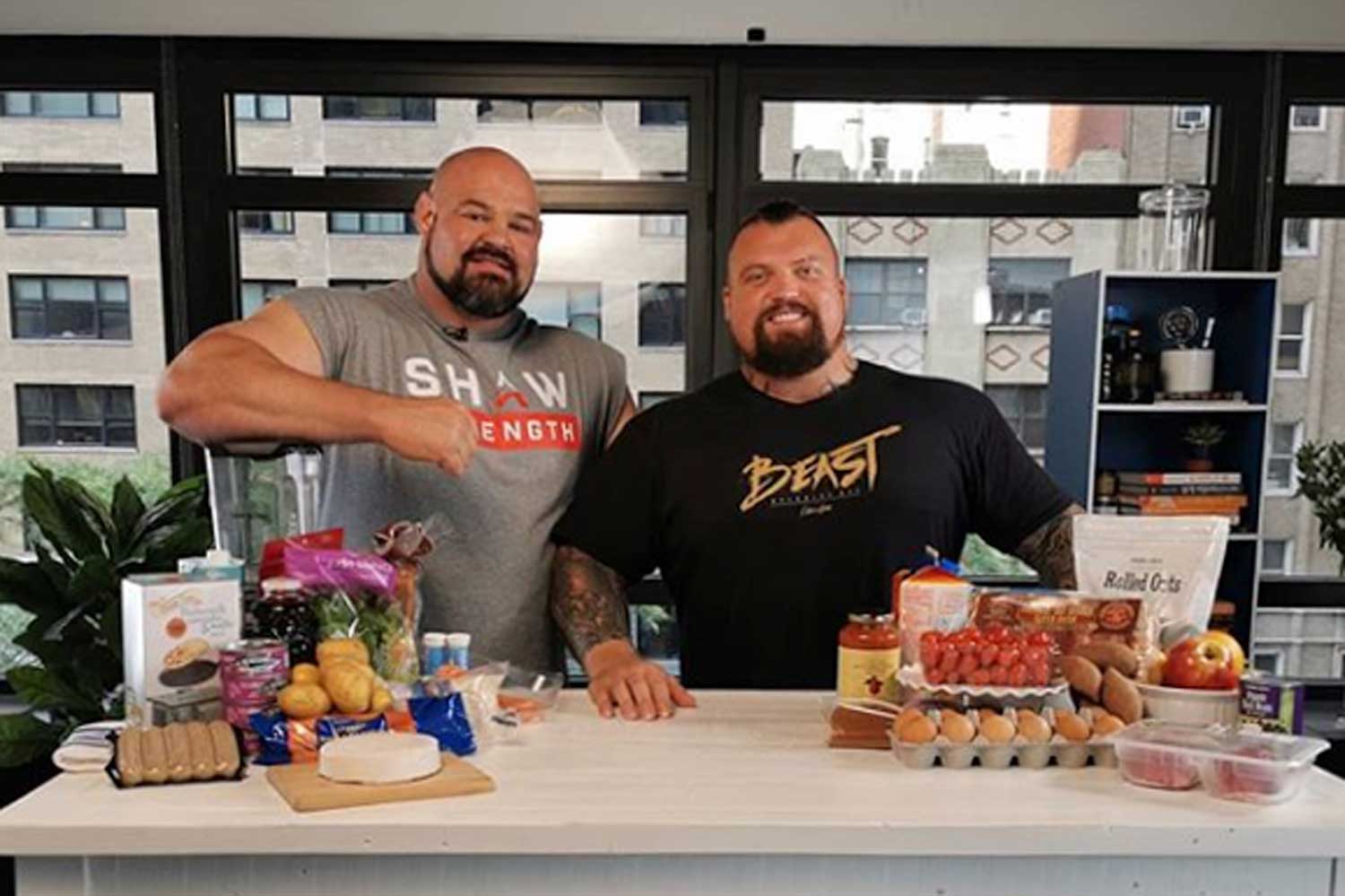 The two strongmen, who boast five World’s Strongest Man titles between them (four to Shaw, one to Hall) can be seen on the History Channel’s Strongest Man in History show, in which they take on some of the most legendary feats of strength ever recorded. But their own diets are remarkable in and of themselves. The two men consume close to 10,000 calories a day. Each. (Before you get concerned, know that both Hall and Shaw—as well as many strongman—work closely with dieticians.)